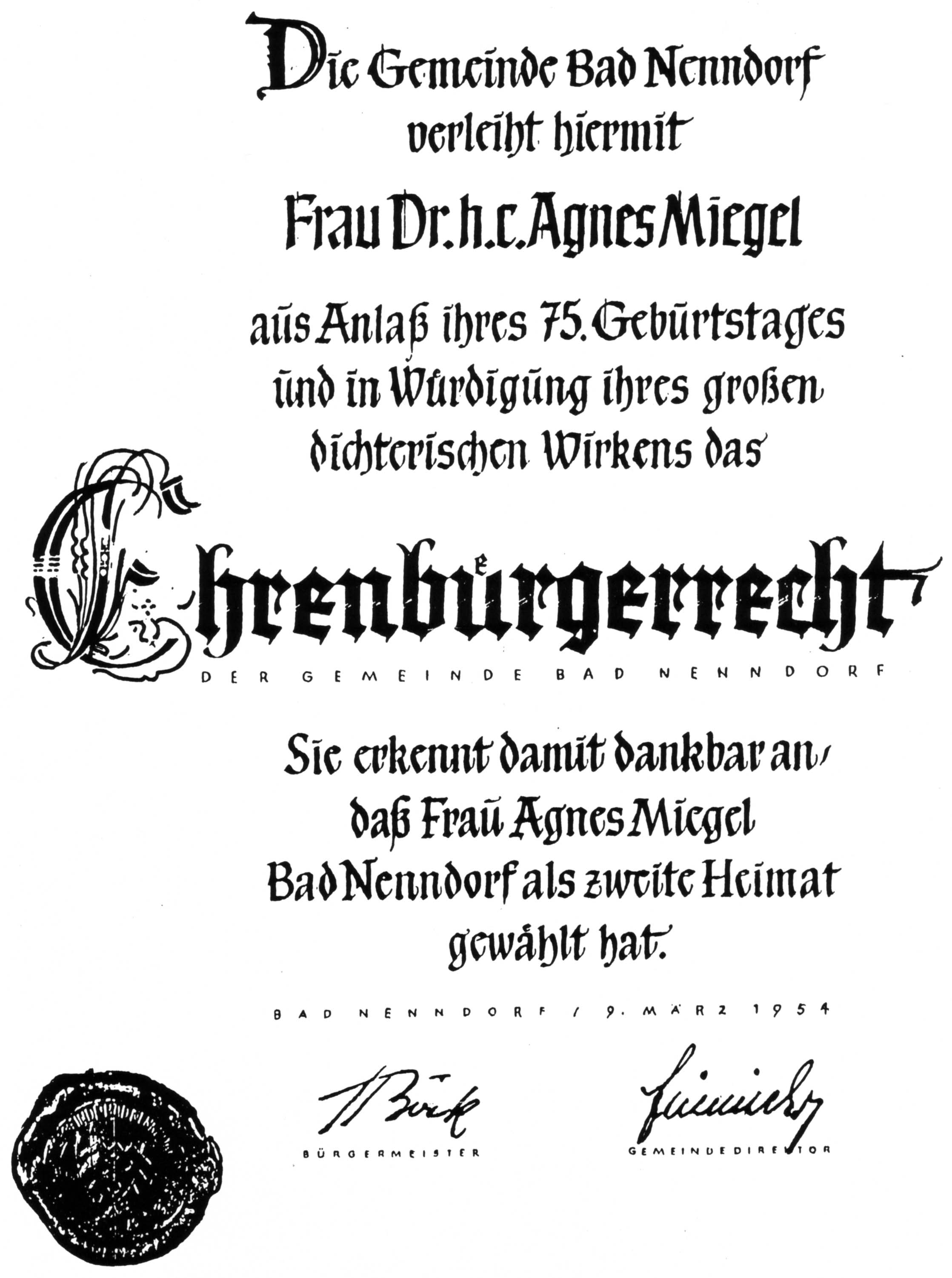 kann es Schöneres geben, als Agnes Miegel - als Ehrenbürgerin und